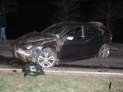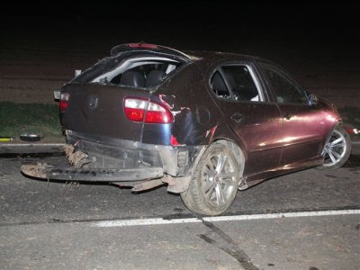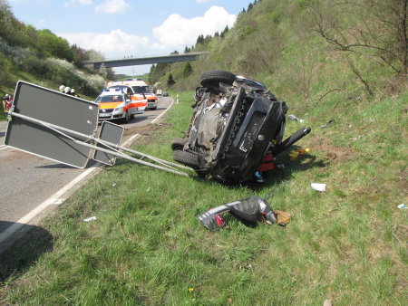 Straßengraben mit einem Verkehrszeichen. Das Fahrzeug überschlug sich und kam auf dem Dach liegend zum Stehen. Alle vier Insassen des Skodas wurden schwerverletzt in umliegende Krankenhäuser eingeliefert. Vom Unfallverursacher fehlt bislang jede Spur.