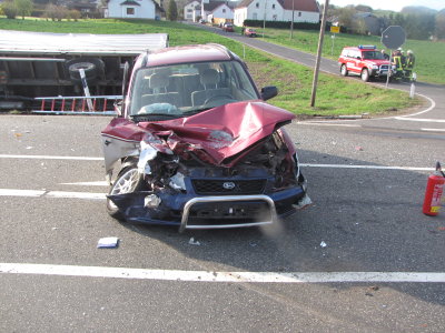 Am Pkw entstand wirtschaftlicher Totalschaden. Der Lkw wurde erheblich beschädigt.