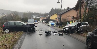 Im Ortskern Schloßheck kam es am 03.02.2023 gegen 14:15 Uhr auf der Prümer Straße zu einer Frontalkollision zwischen zwei entgegenkommenden PKW. Ein 25-Jähriger PKW-Fahrer befand sich alleine in seinem Fahrzeug, welches in Fahrtrichtung Lünebach unterwegs war. Das andere Fahrzeug war besetzt mit einer