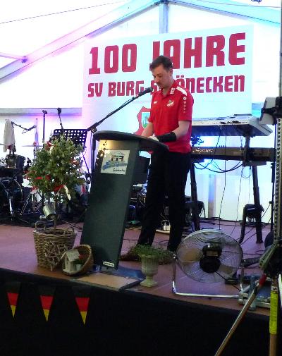Links im Bild: SV Vorsitzender Michael Heinen bei seiner Festansprache. |