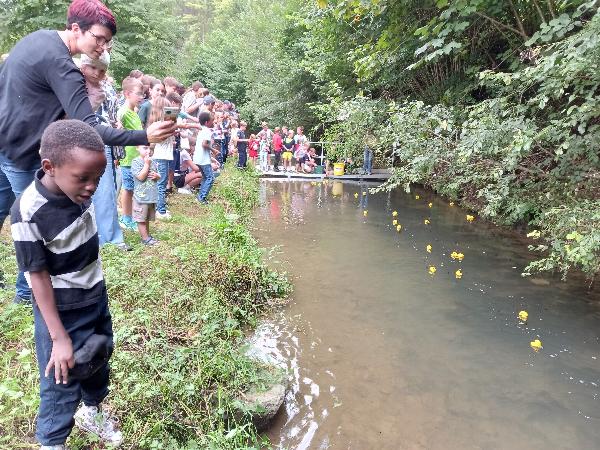 Höhepunkt: Das Entenrennen auf der Nims, die in diesem Jahr gut mit Wasser